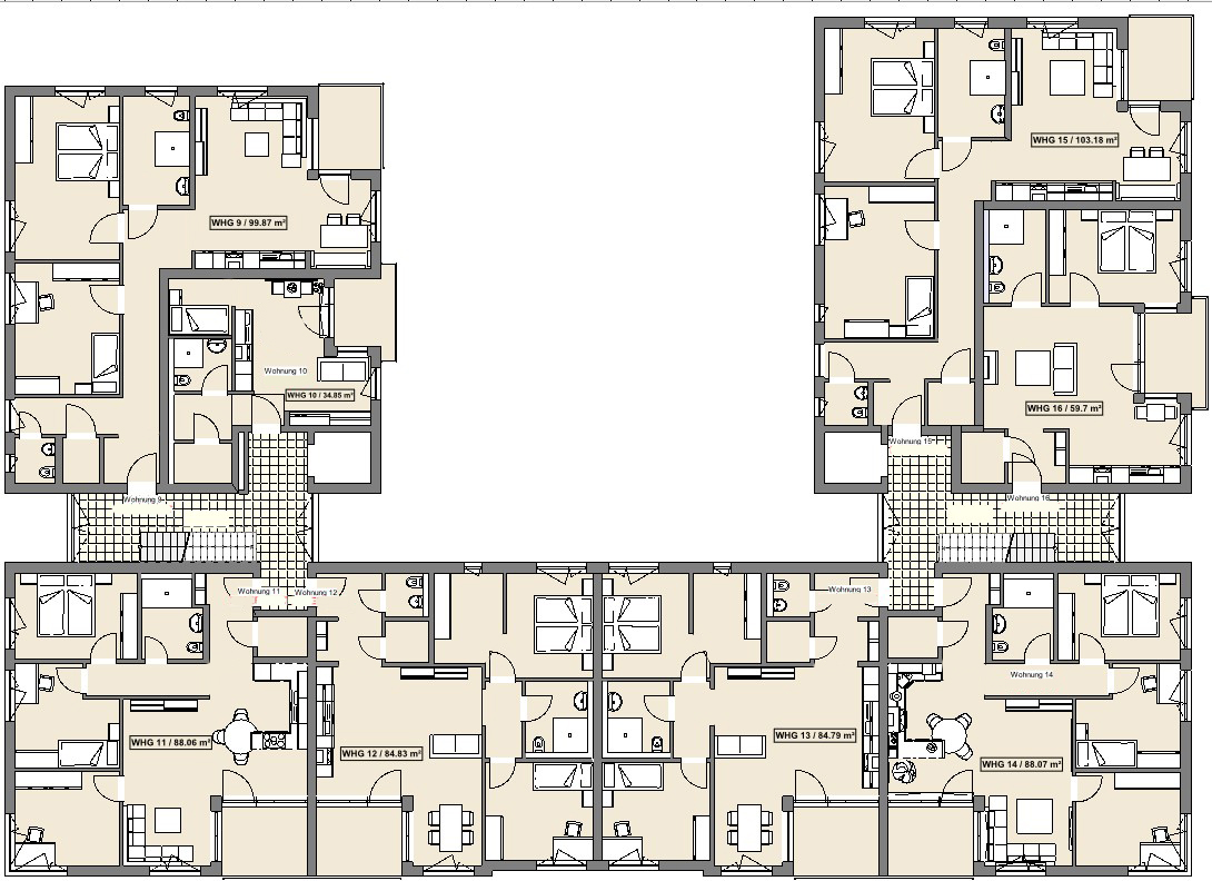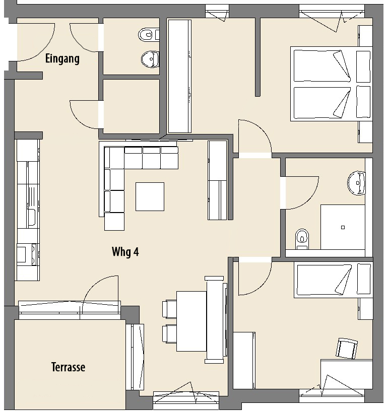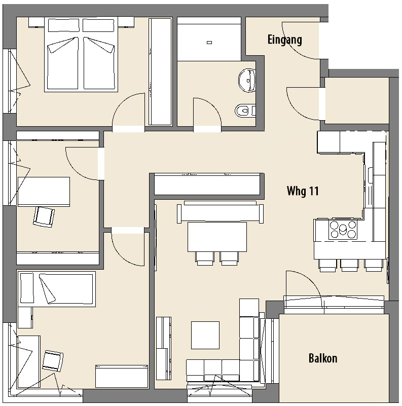 Verschaffen Sie sich einen Überblick über die Raumaufteilung und das Raumkonzept unserer Wohnungen.